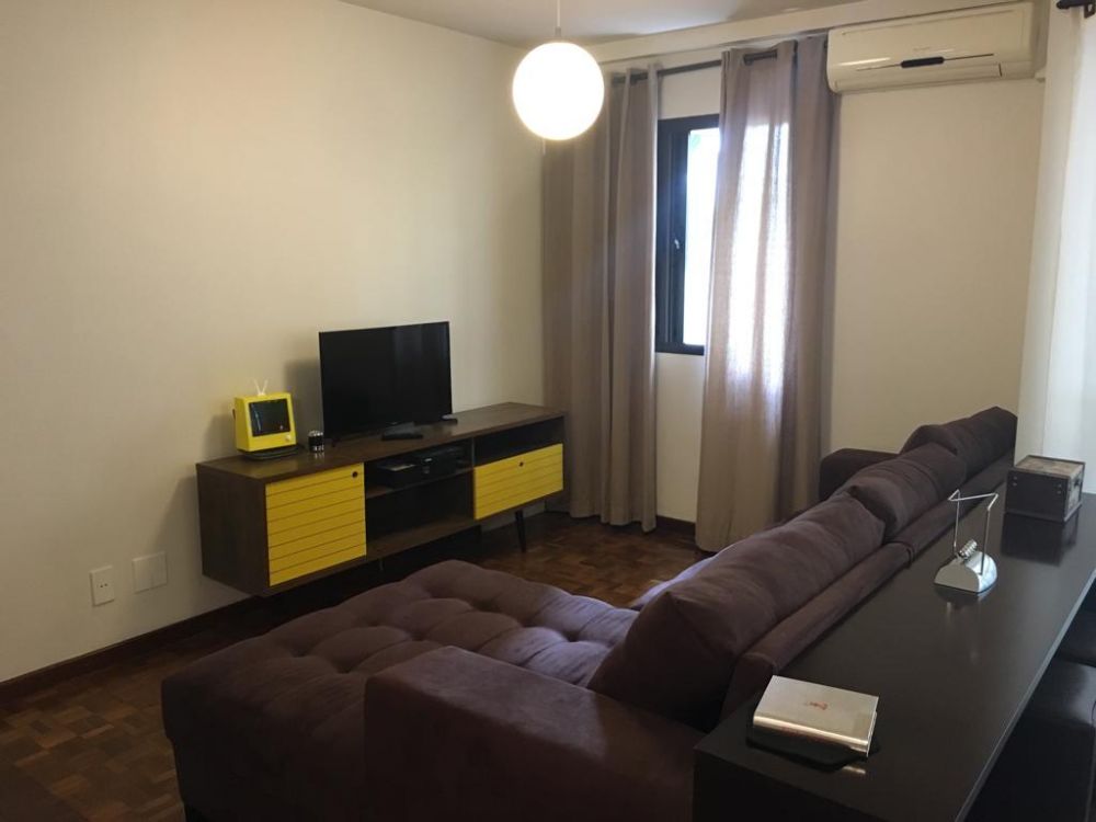 Total 98 m2, 2 aptos por andar, planta original com 3 dormitórios mas atualmente com 2 dorms e sala ampliada , que pode reverter, sendo 1 suite, living para 2 ambientes com terraço, cozinha, despensa, área de serviço com banheiro, escritório (ou quarto de empregada), 1 vaga de garagem (2º subsolo).