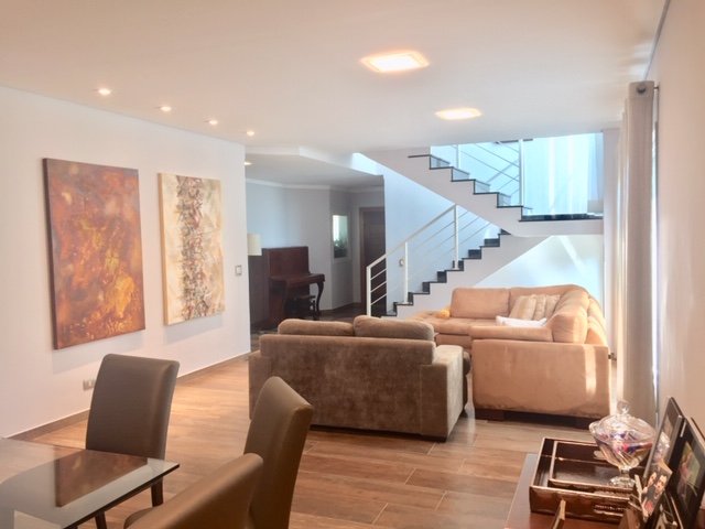 - 4 suítes sendo três no piso superior e uma no piso térreo (podendo ser utilizada também como escritório)