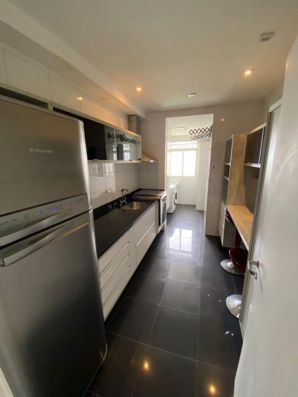 Mobiliado,122 m², 3 suítes, sala para 3 ambientes, ampla varanda fechada com vidro, cozinha, área de serviço, 2 vagas de garagem e depósito no próprio andar.