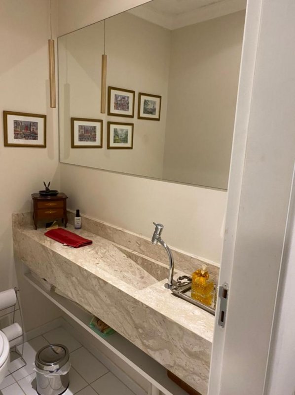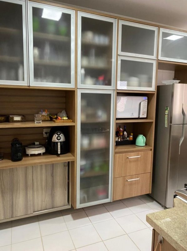 158 m2, 3 suítes, varanda gourmet, lavabo, wc de empregada, 3 vagas + depósito.