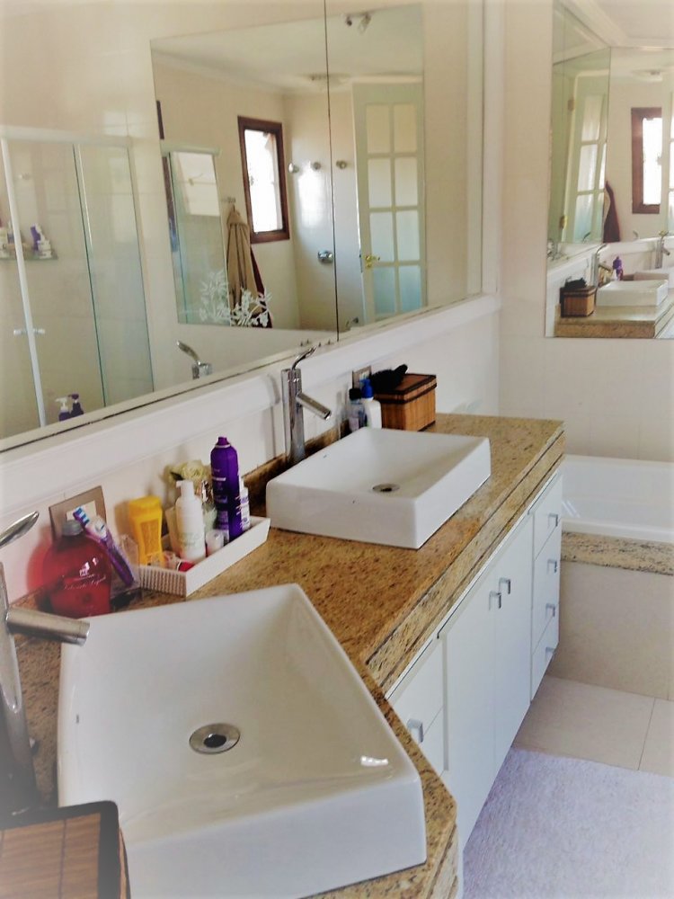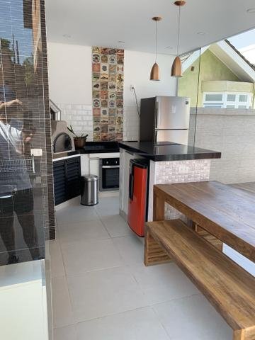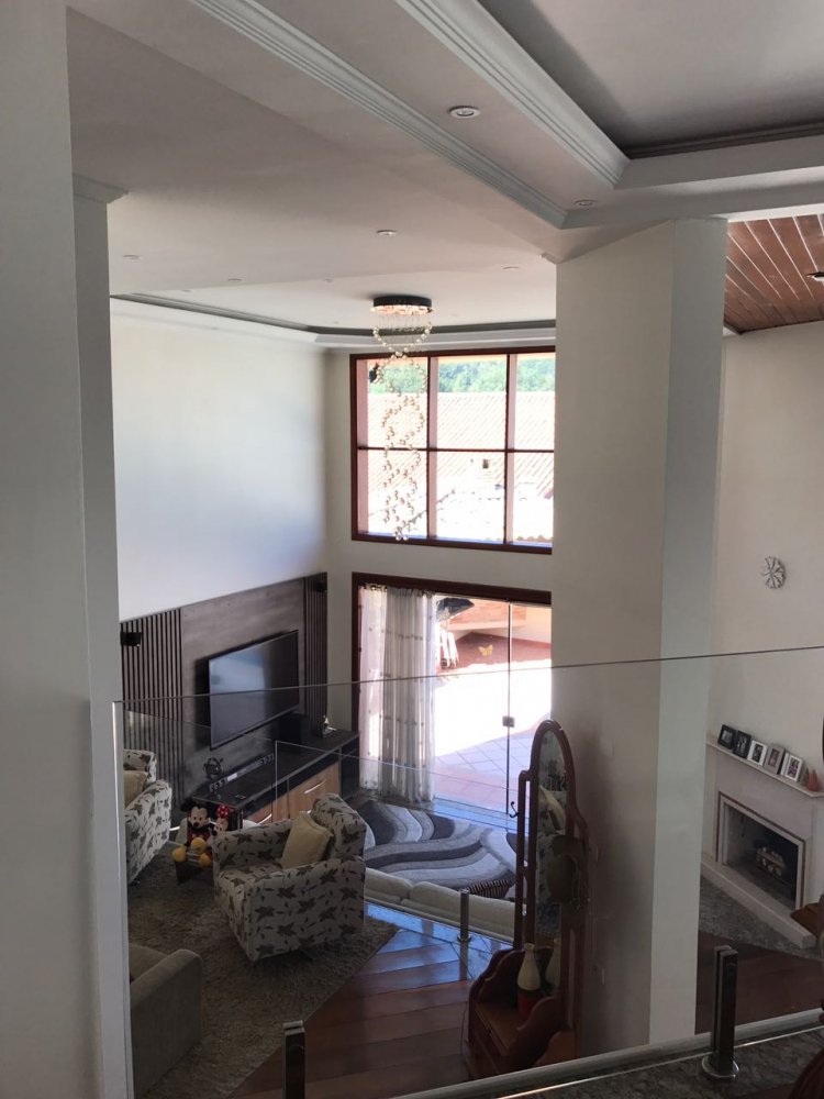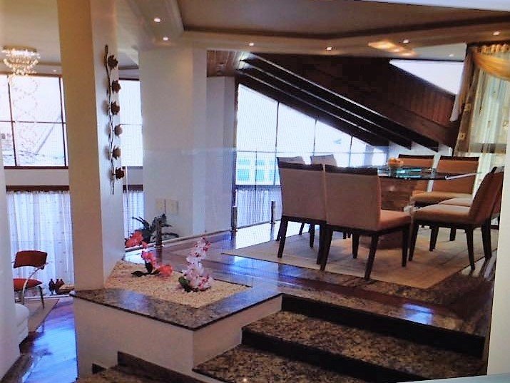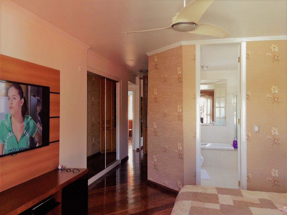 Conta com 3 dormitórios sendo 2 suítes (master com closet e banheira), sala com pé direito alto, sala de estar/lareira, sala de Tv, sala de jantar, bar com adega e balcão, lavabo, cozinha, despensa, escritório, academia (ou suíte de empregada), área serviço, depósito, 4 vagas de garagem,piscina aquecida, área gourmet completa com churrasqueira, coocktop, forno elétrico, forno de pizza, armários, pia e balcão, jardim na frente da casa.
