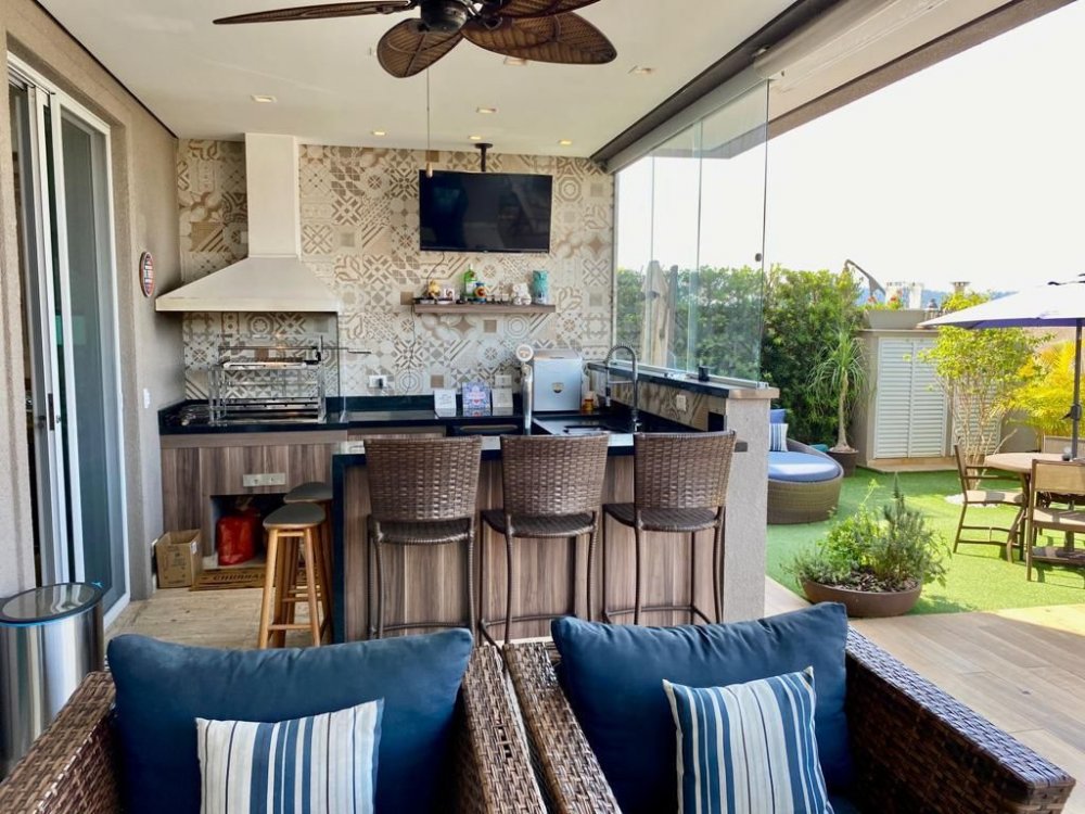 Cozinha completa e equipada integrada com a varanda gourmet