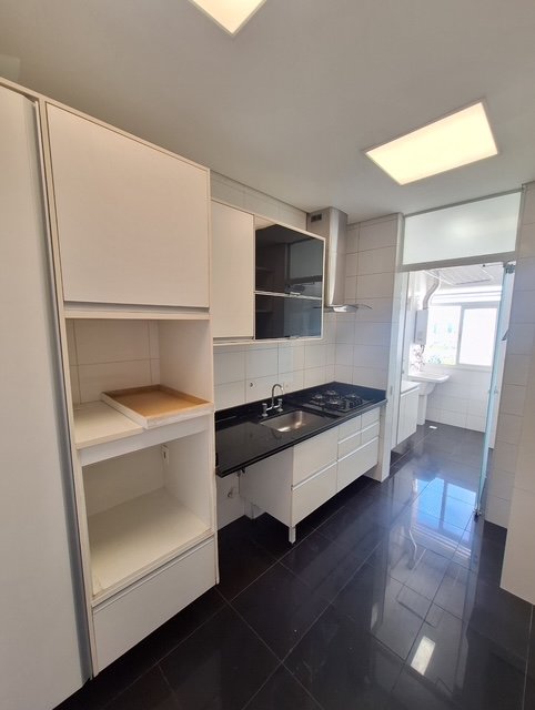 122 m², 3 suítes, sala para 3 ambientes, varanda gourmet com churrasqueira fechada com vidro, cozinha, área de serviço, 3 vagas de garagem, depósito privativo no subsolo, andar alto com linda vista.