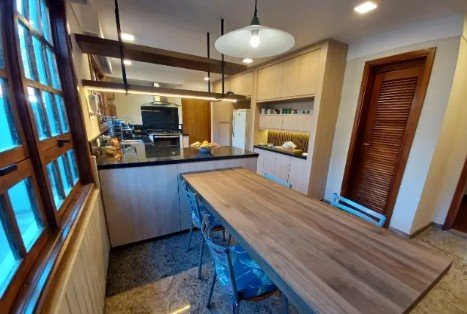 Fino acabamento em mármore travertino romano, piso em madeira natural, granito na cozinha.