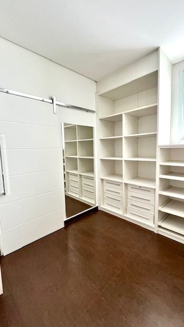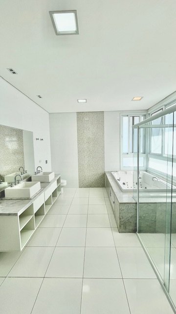 Suíte master com amplo closet e banheiro com hidromassagem e cuba/chuveiro duplo.