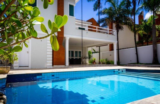 Imóvel conta com 5 suítes, todas com closet e armários planejados, sala para 3 ambientes com mesa de jantar, ampla cozinha, despensa, ampla área externa com piscina, varanda gourmet com churrasqueira, escritório, dependência de funcionária, 4 vagas de garagem.