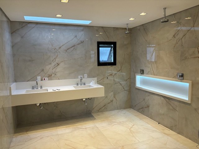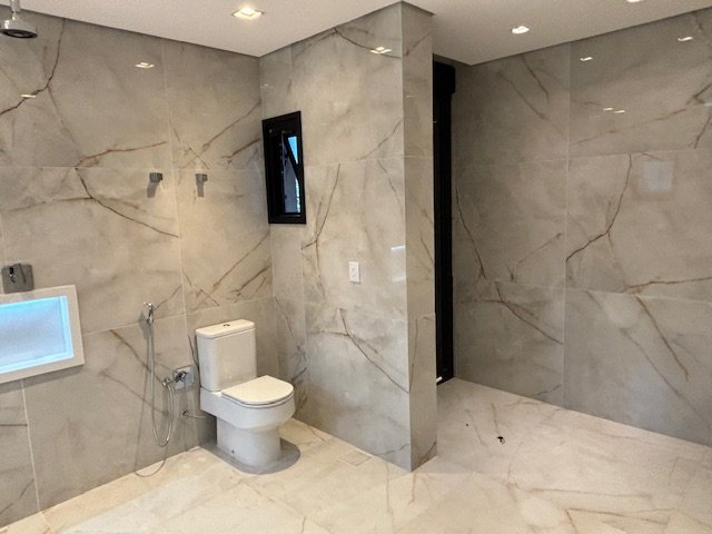 Casa com 3 pisos - inferior garagem fechada - 2º pavimento sala ampla de divesos ambientes - 3º pavimento com 4 suites, uma master espetacular, com closet, banheiro enorme man-woman. Possui elevador para içar volumes da garagem para o 2º pavimento