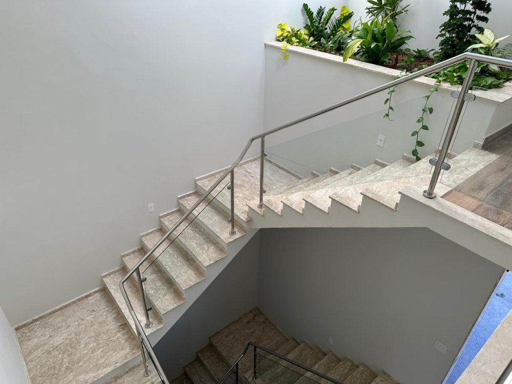 Pavimento Superior: Suite máster com janela panorâmica,2 Closet e 2 Banheiros individuais,Banheiro feminino com sacada, Banheira de Hidro, 3 Suites com Banheiro, Closed ,Espaço de Home Theater, Corredor de Circulaçao,