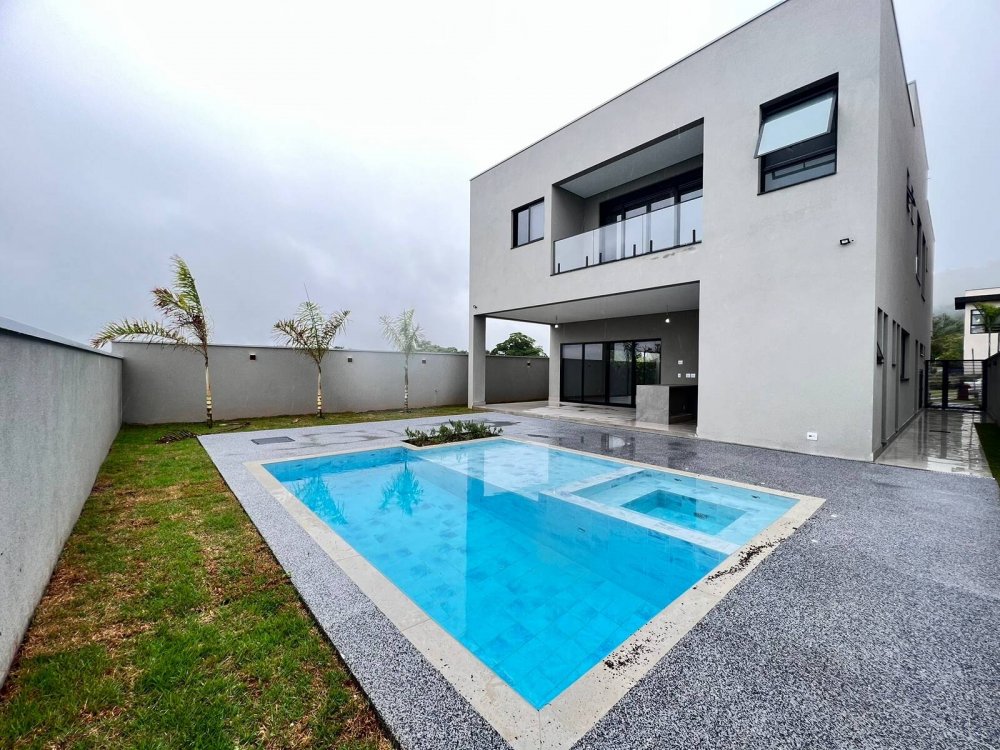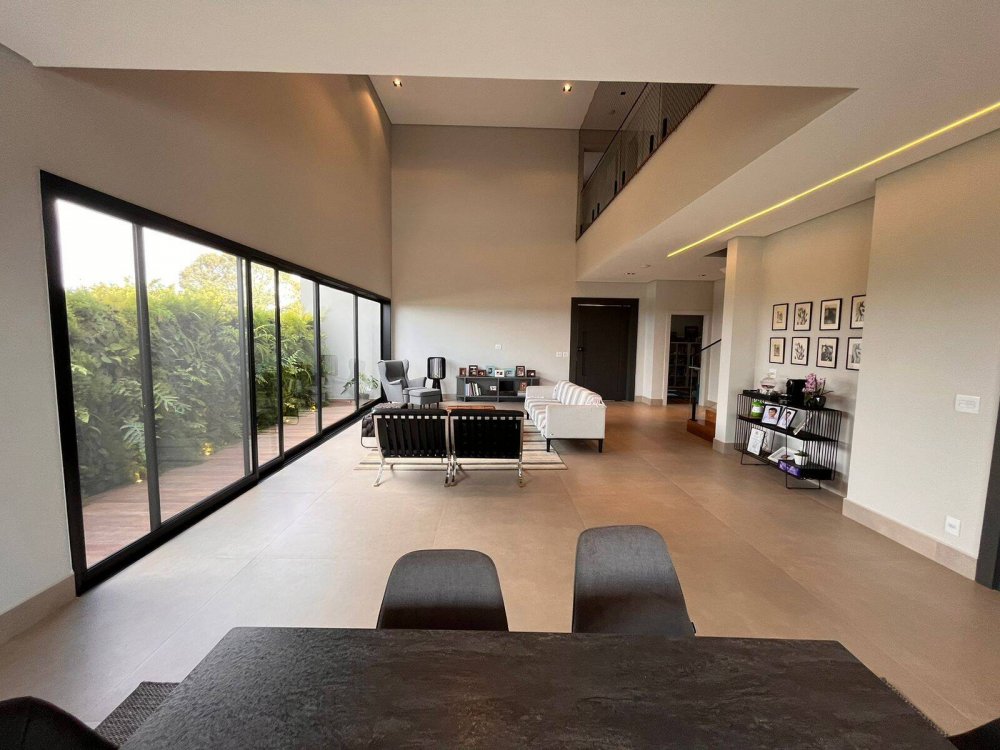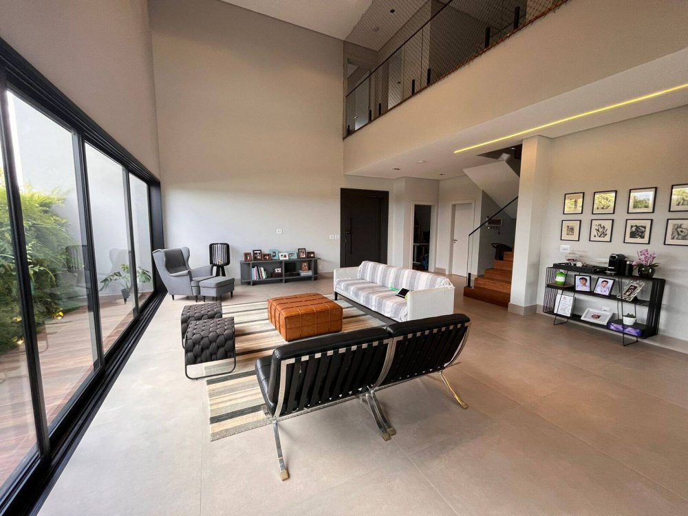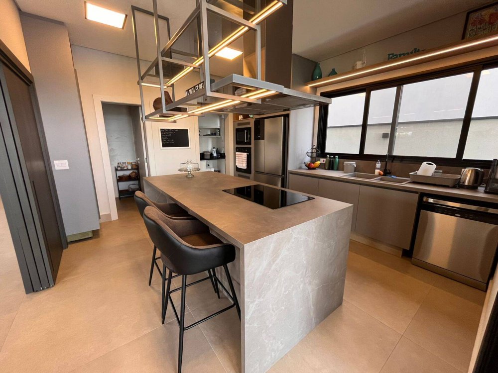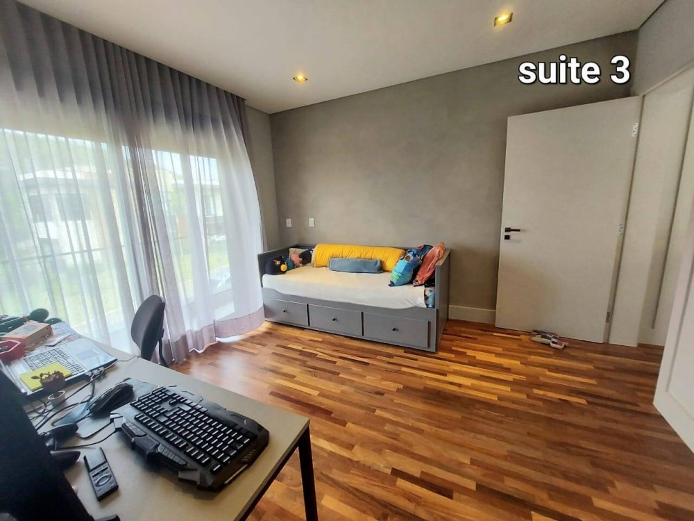 Ótima localização no condomínio com 390 m² de área construída, 4 suítes, sala ampla com pé direiro alto, escritório, sala de tv, cozinha integrada com área gourmet, despensa, piscina, jardim gramado, quarto de empregado, 6 vagas garagem.