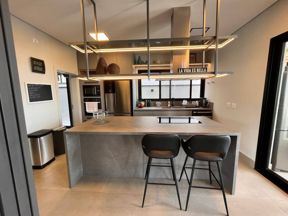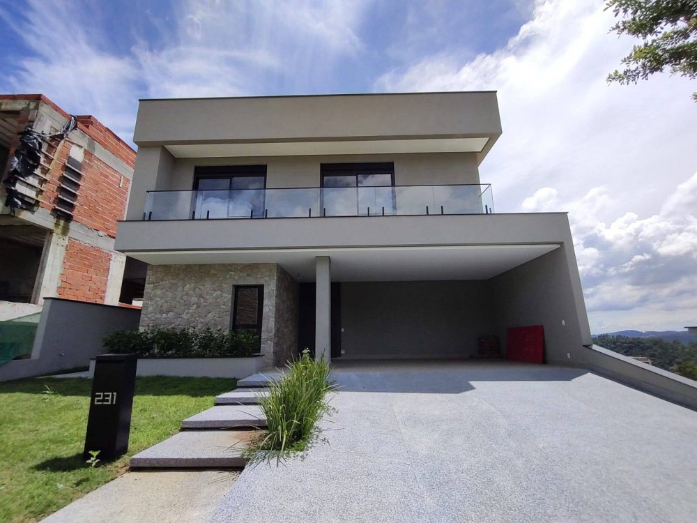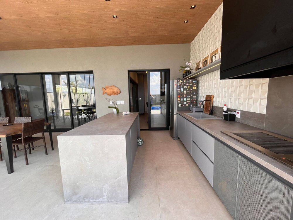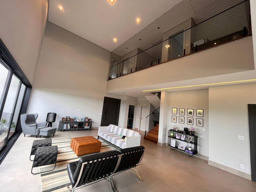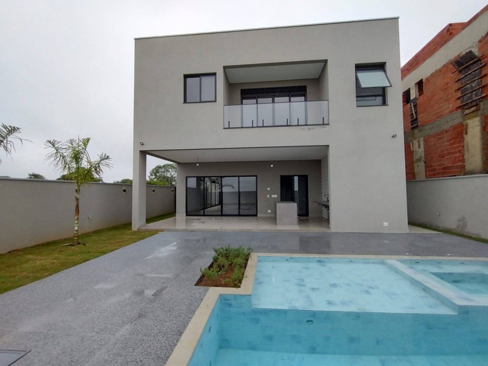 Ótima localização no condomínio com 390 m² de área construída, 4 suítes, sala ampla com pé direiro alto, escritório, sala de tv, cozinha integrada com área gourmet, despensa, piscina, jardim gramado, quarto de empregado, 6 vagas garagem.