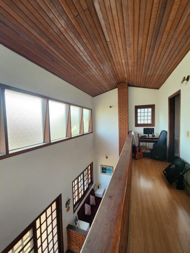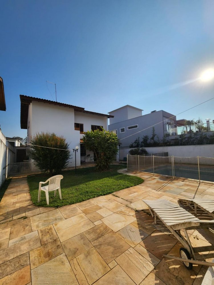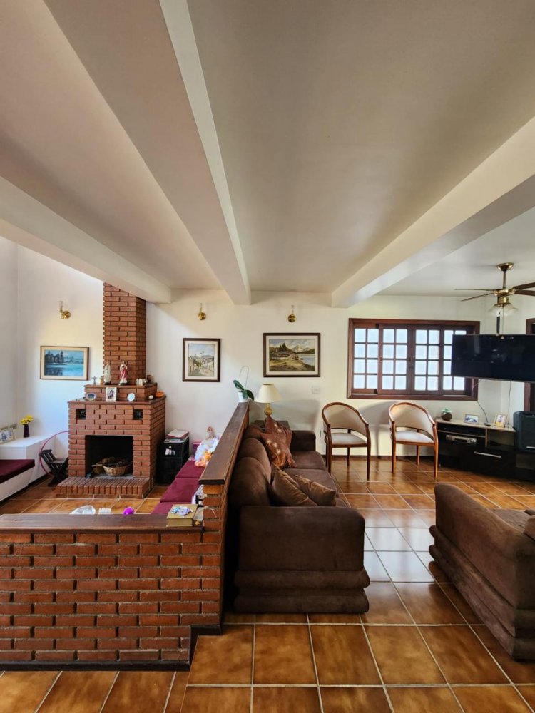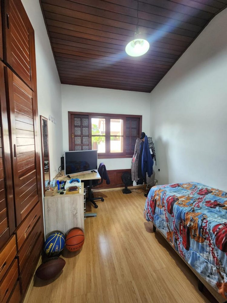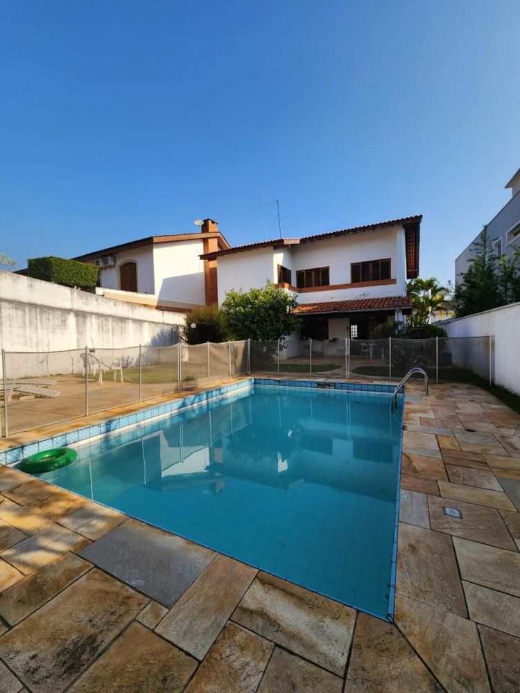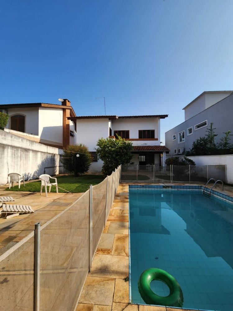 Conta com 3 quartos sendo 1 suíte (possível ampliação do piso superior), sala 3 ambientes com pé direito alto, cozinha, despensa, lavabo, garagem para 4 carros, dependência de serviços, churrasqueira, piscina e jardim gramado.