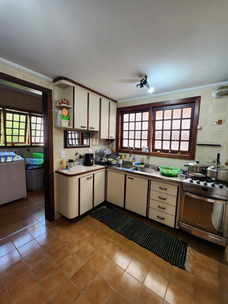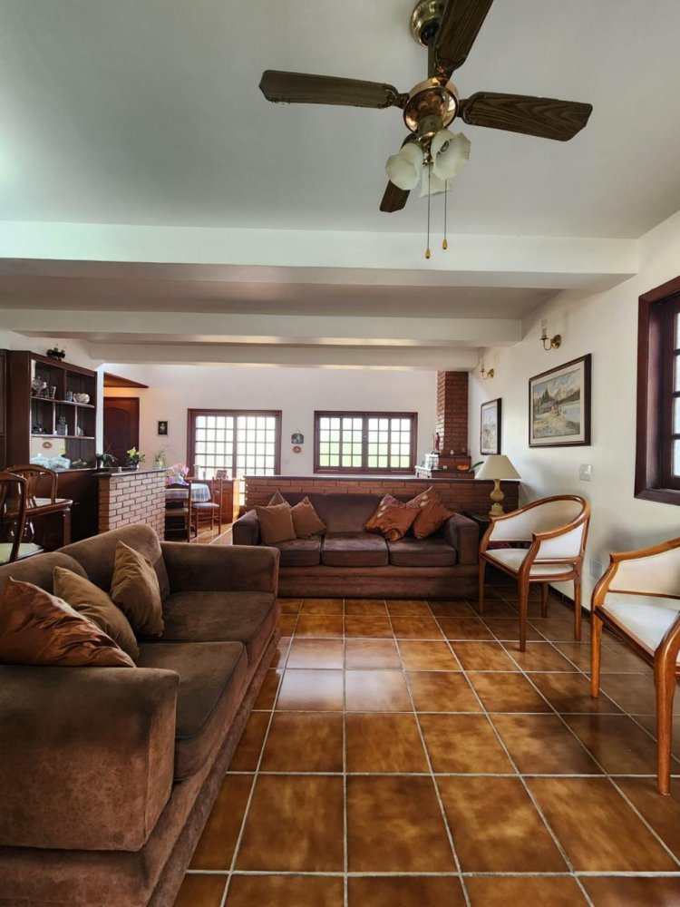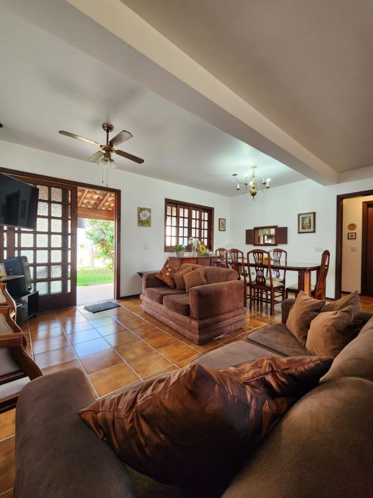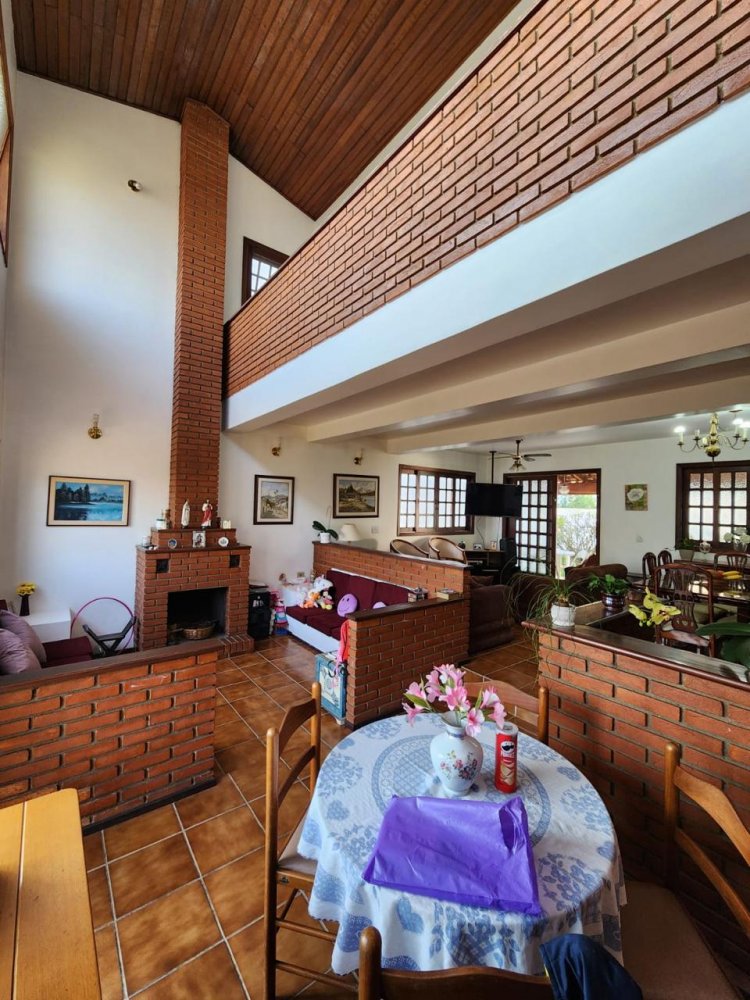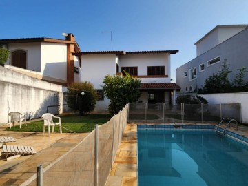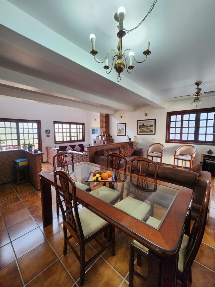 Conta com 3 quartos sendo 1 suíte (possível ampliação do piso superior), sala 3 ambientes com pé direito alto, cozinha, despensa, lavabo, garagem para 4 carros, dependência de serviços, churrasqueira, piscina e jardim gramado.