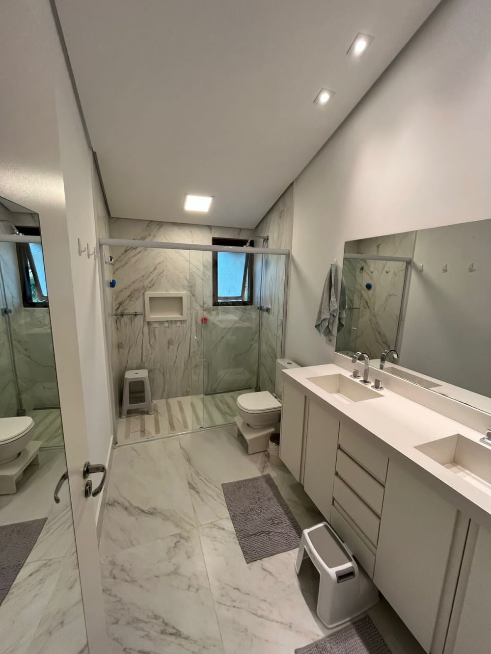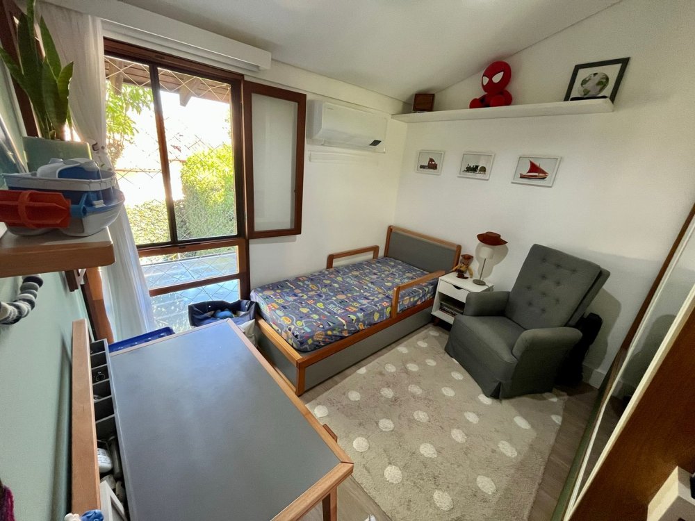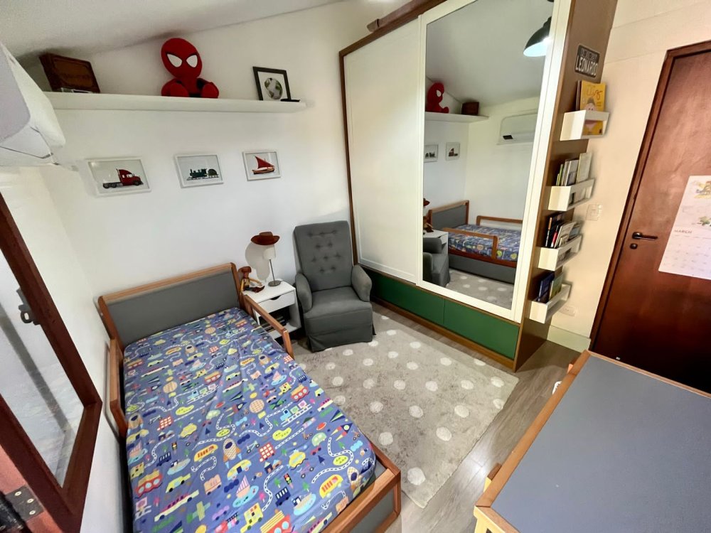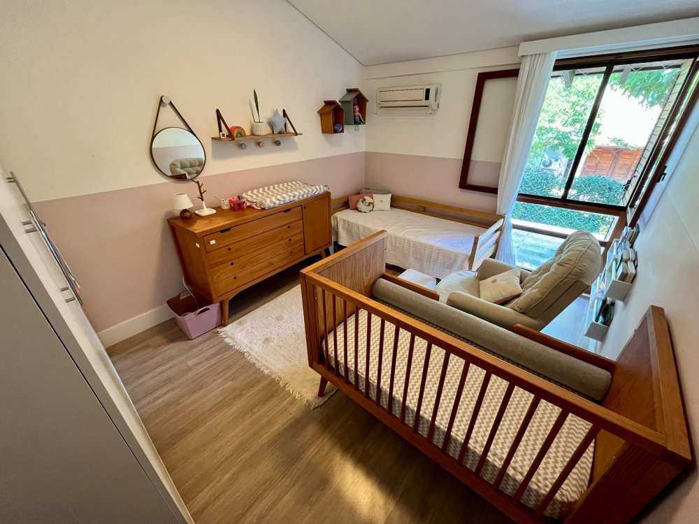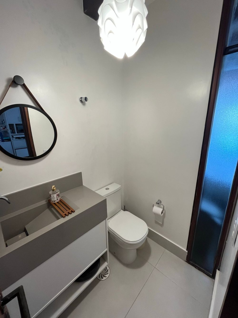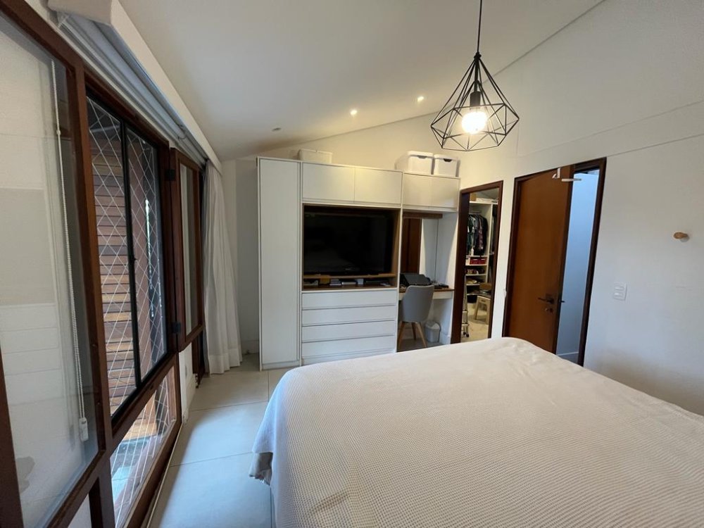 A suíte também passou por uma ampla reforma, ganhando um closet espaçoso integrado ao banheiro, que também foi ampliado. Todos os revestimentos e metais dos banheiros foram atualizados.