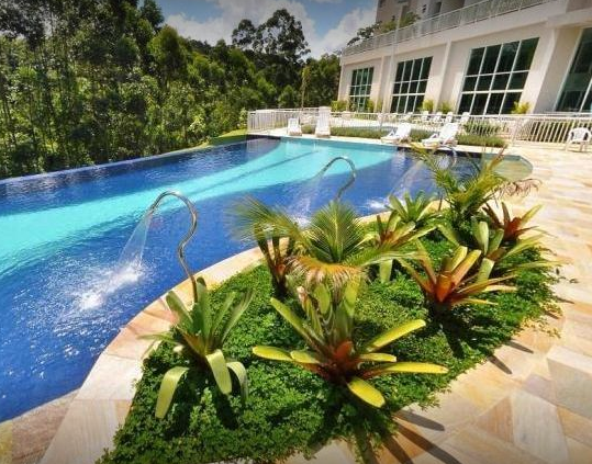 Condomínio clube com espaço pet, horta coletiva, mini mercado, piscina adulta e infantil, piscina aquecida, portaria 24 horas, quadra, quadra de tênis, sala de ginástica, salão de festa, sauna, espaco band, garagem, cinema, circuito de segurança, entrada independente, espaço gourmet, espaço jovem, guarita, salão de jogos adultos e squash.