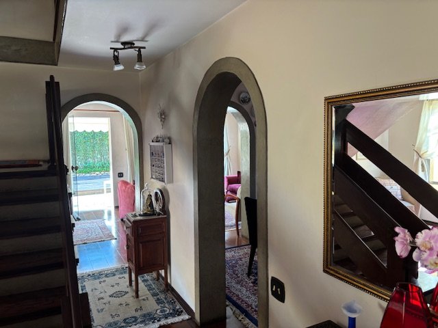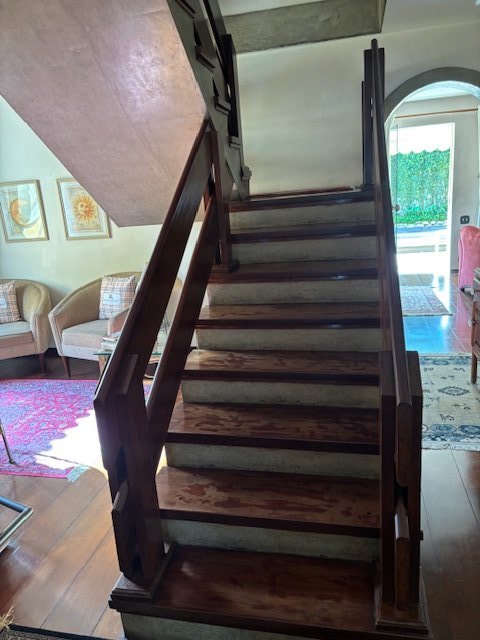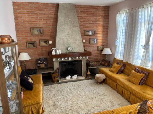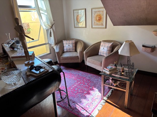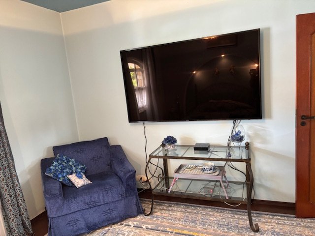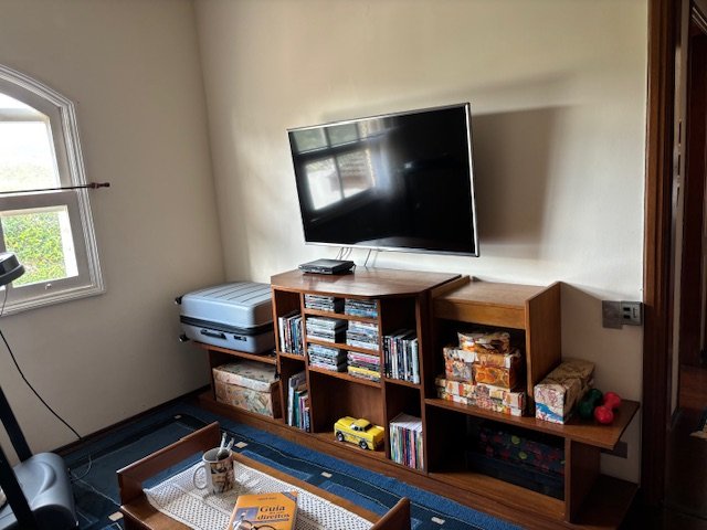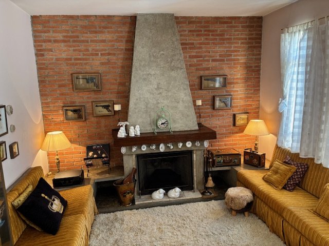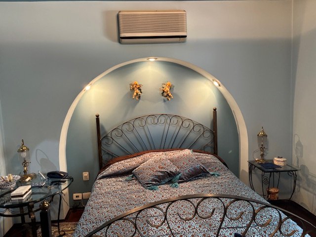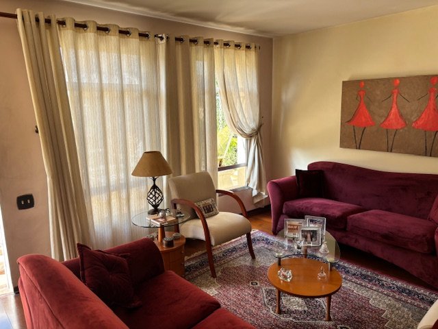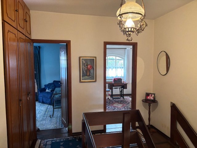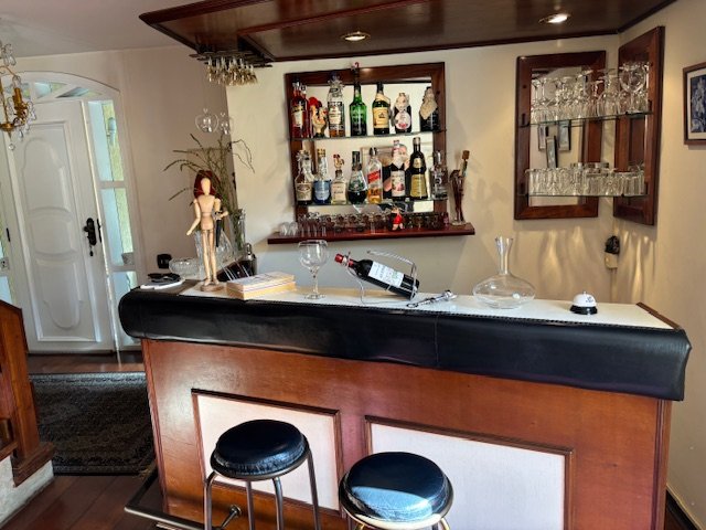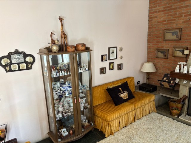 Atualmente a parte térrea da casa é bem segmentada, tem uma sala de estar com lareira, sala de jantar, sala íntima com bar, cozinha, área de serviço, dependências de empregada com banheiro.