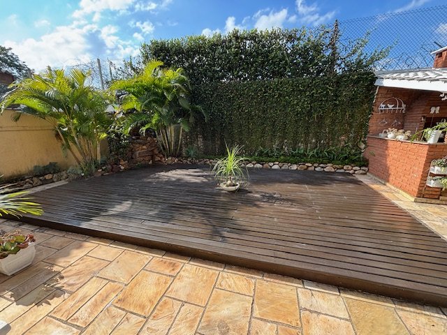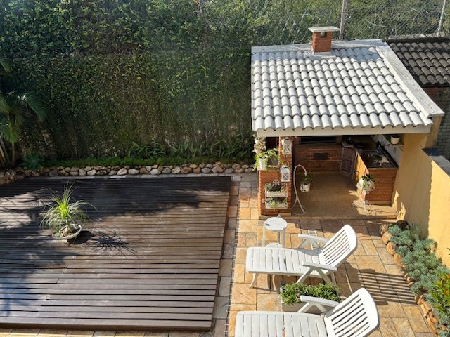 A área de lazer é constituída de piscina (com aquecimento), churrasqueira e quintal