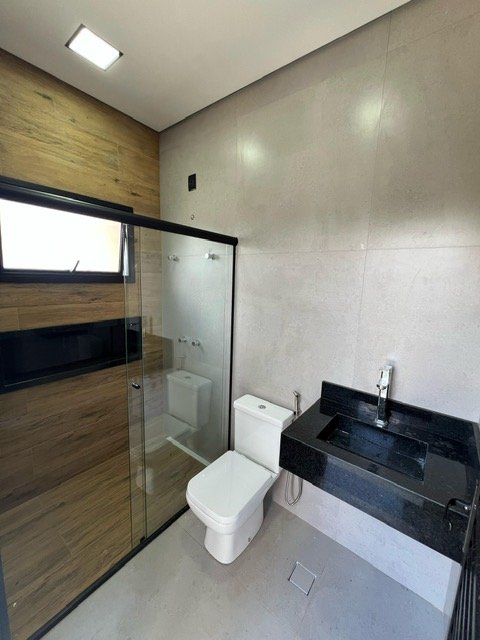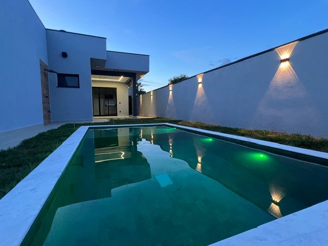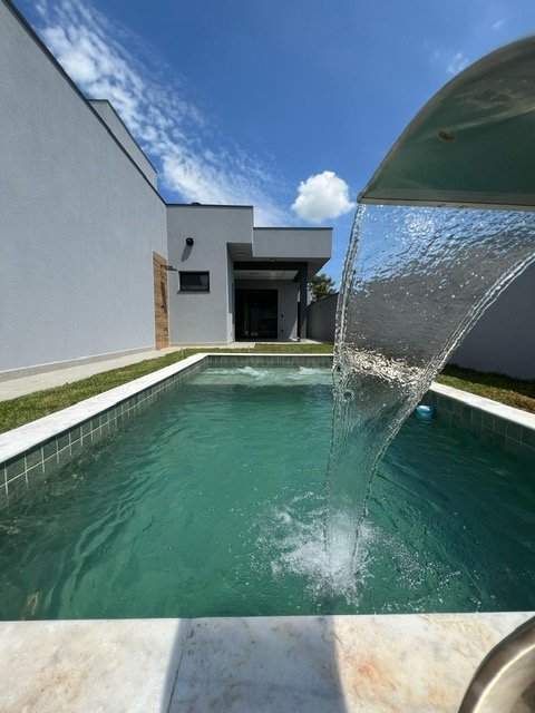 - Detalhes: Casa com porcelanato, box de banheiro, pias em pedra escupida, todos os banheiros com armário, suíte master com closet, uma das suítes com guarda-roupas. Móveis da cozinha e área gourmet já inclusos. Projetos (elétrico, hidraúlico, estrutural em BIM), detalhes construtivos de impermeabilização, estruturas. Iluminação com interruptores inteligente, preparação para sistema solar, água quente e fria, preparação para circuito interno de câmeras, tomada para carro elétrico. Casa com piscina.