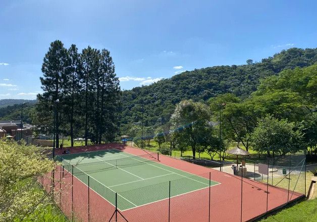 Condomínio rodeado de mata e com ótimo lazer: academia, quadra de beach tênis, quadra poliesportiva, campo de futebol, quadra de tênis, playground, churrasqueira.