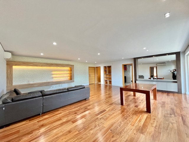 Conta com ampla sala para vários ambientes com: lareira, sofá e mesa (cadeiras por conta do locatário), lavabo.