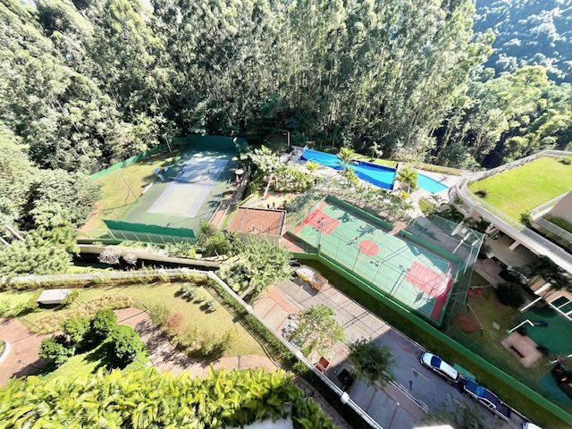 Condomínio com infraestrutura completa de lazer: piscinas, Jacuzzi, piscina aquecida coberta, quadra poliesportiva, quadra de tênis, quadra de squash, 3 salões de festas, salão infantil, academia bem equipada, espaço para lutas, brinquedoteca, salão de jogos, playground, salão de beleza, lanchonete, saunas seca e úmida, sala de massagem e 2 churrasqueiras externas.