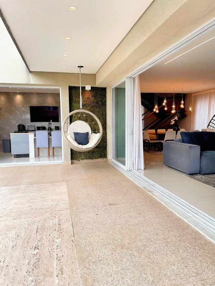 Todos os ambientes têm vista para a piscina e são ricos em armários, as mobílias e eletrodomésticos são de qualidade e estão conservados, o acabamento da casa primoroso com mármore travertino romano na área externa.