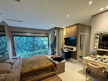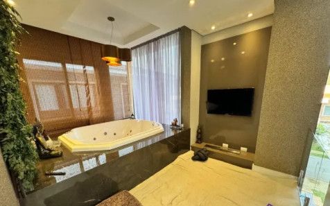 - Suíte master com closet com ilha, veneziana automatizada, jardim suspenso, banheiro com duas duchas de teto, duas pias, banheira de imersão e acabamento de alto padrão
