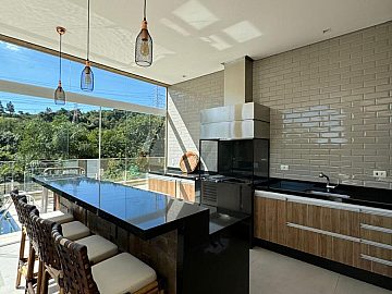Área gourmet completa com piscina e com linda vista para a mata.