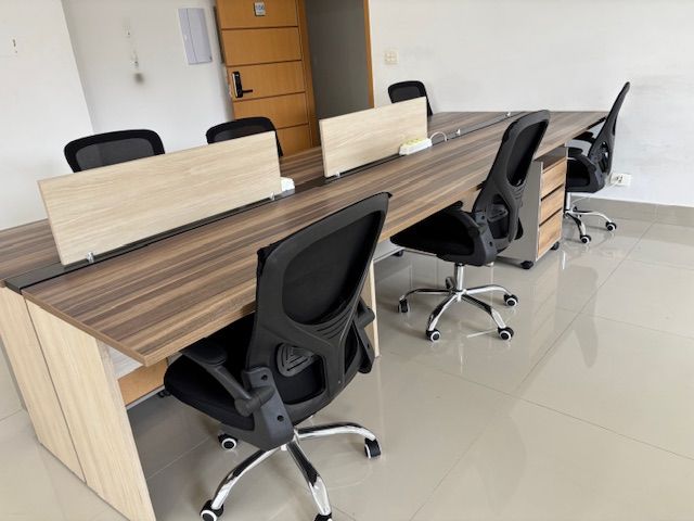 Possui mesa de trabalho com 6 posições, toda preparada para uso imediato, sem reformas