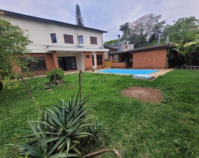 Total 400 m2 repleta em armários com 4 dormitórios sendo 2 suítes, lavabo, escritório, salas de estar, jantar e sala de lareira, varanda, copa/ cozinha com armários atuais, despensa, ampla e agradável área externa com churrasqueira, piscina e jardim gramado, 4 vagas de garagem.