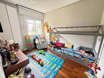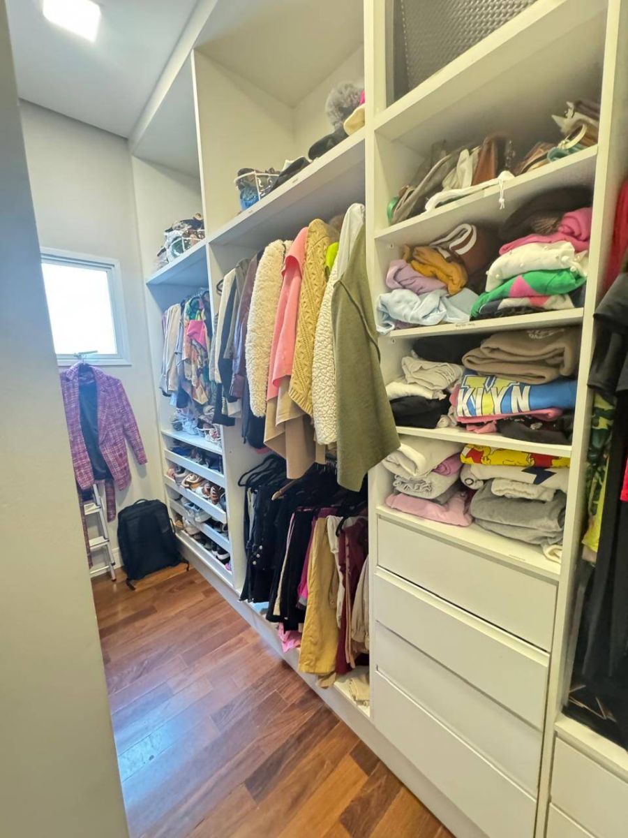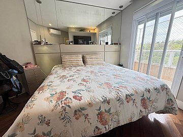 Piso em madeira nos quartos, ar condicionado, repleta de armários planejados.