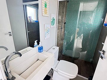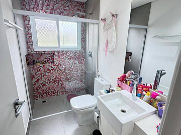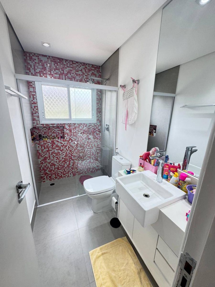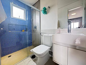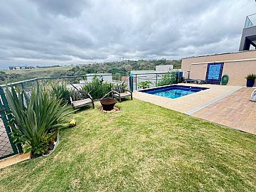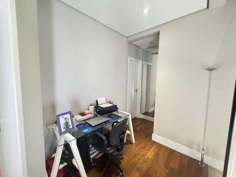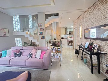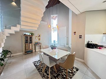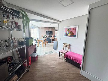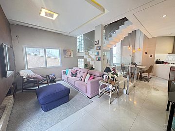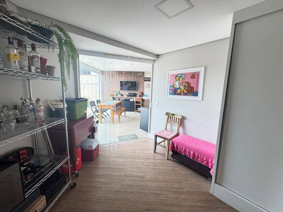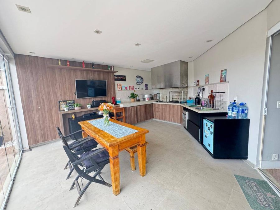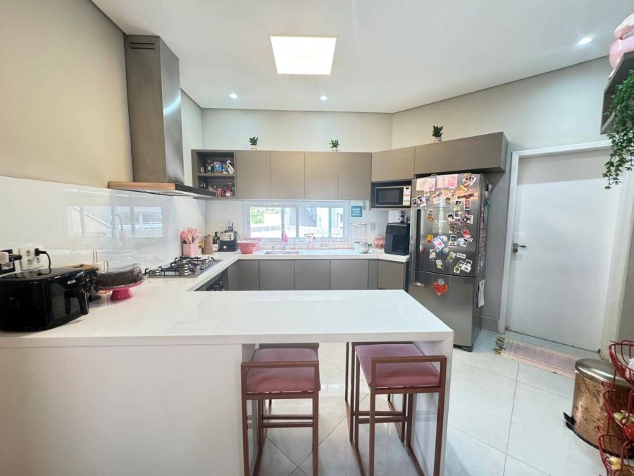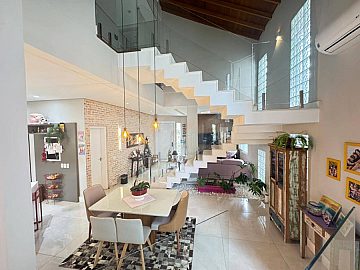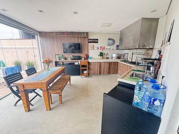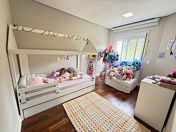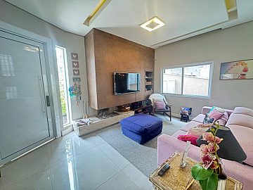 Possui 260 m2 de construção em terreno de 441 m2, 4 suítes sendo uma no piso térreo, sala de estar com lareira, sala de jantar com pé direito alto, lavabo, cozinha aberta para a sala de jantar com planejados de ótima qualidade, despensa, amplo espaço gourmet envidraçado com belíssima vista, piscina, sala de tv, banheiro externo, 4 vagas de garagem.
