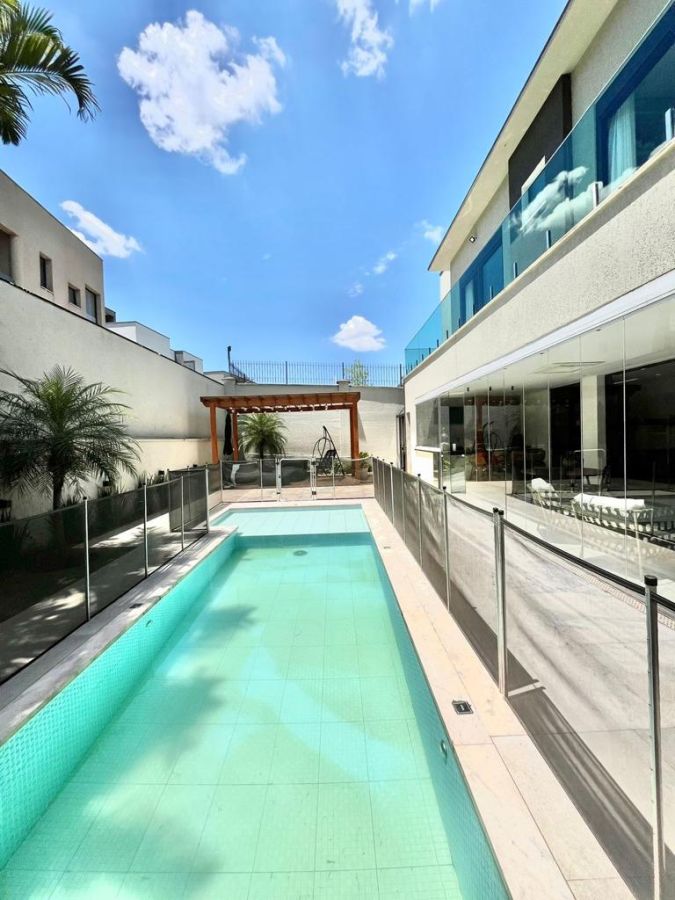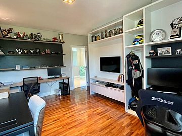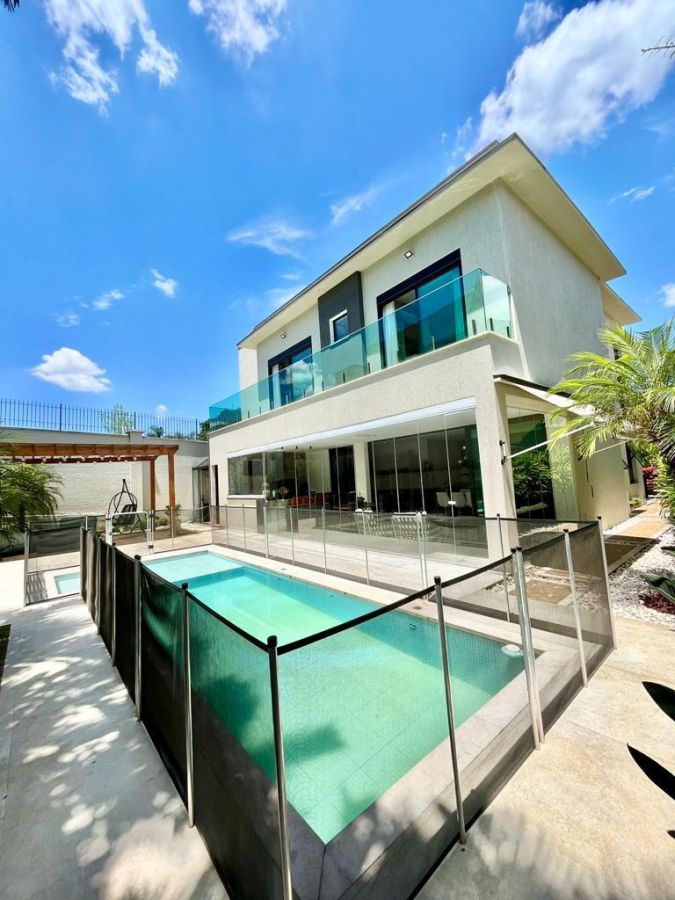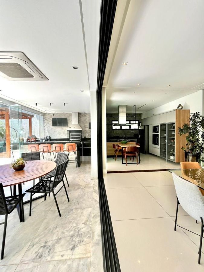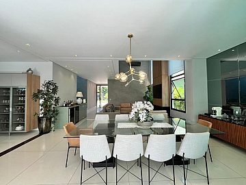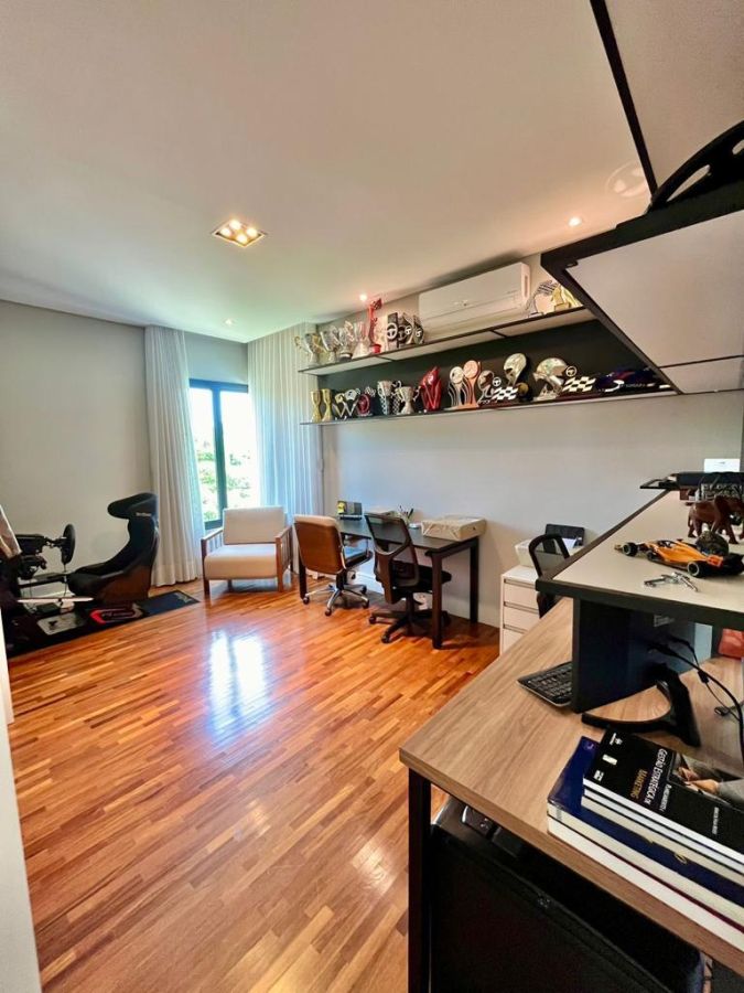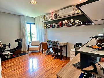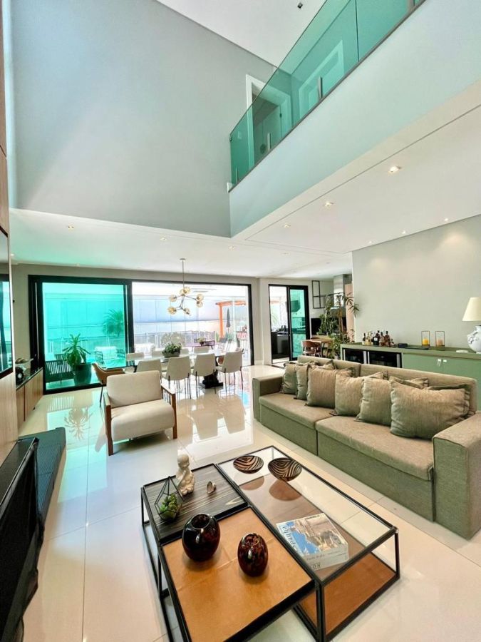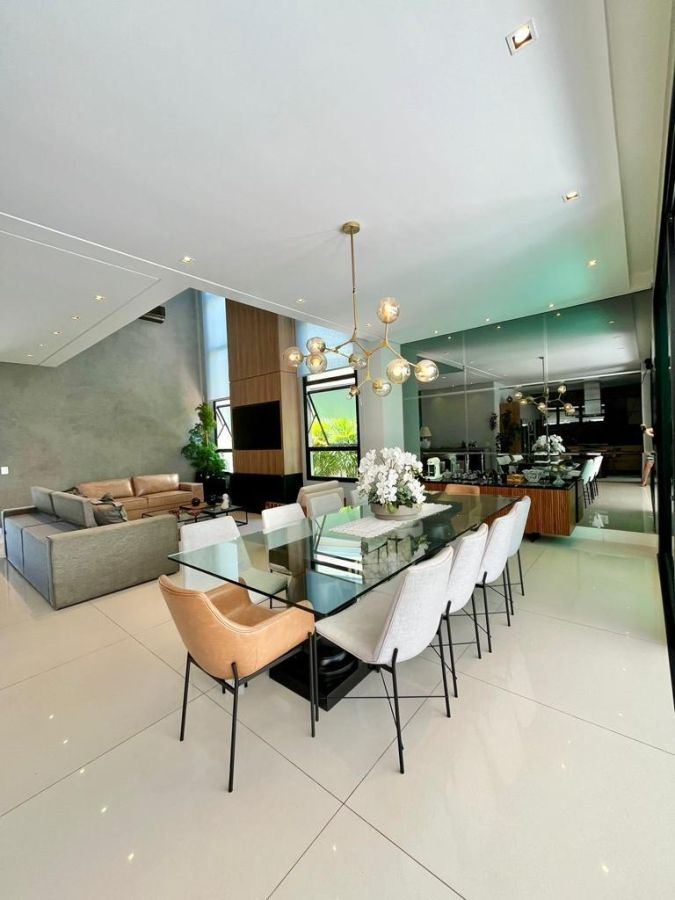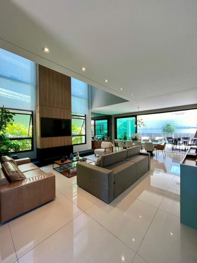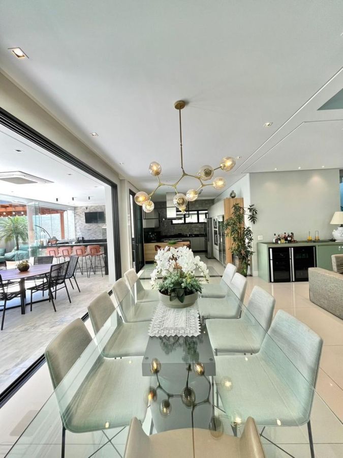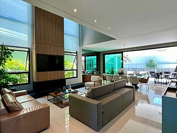 São 4 suítes sendo a master com amplo closet, sala para 3 ambientes com pé direito alto, escritório/sala de tv, cozinha aberta, despensa, espaçosa varanda gourmet, piscina, 4 vagas de garagem.