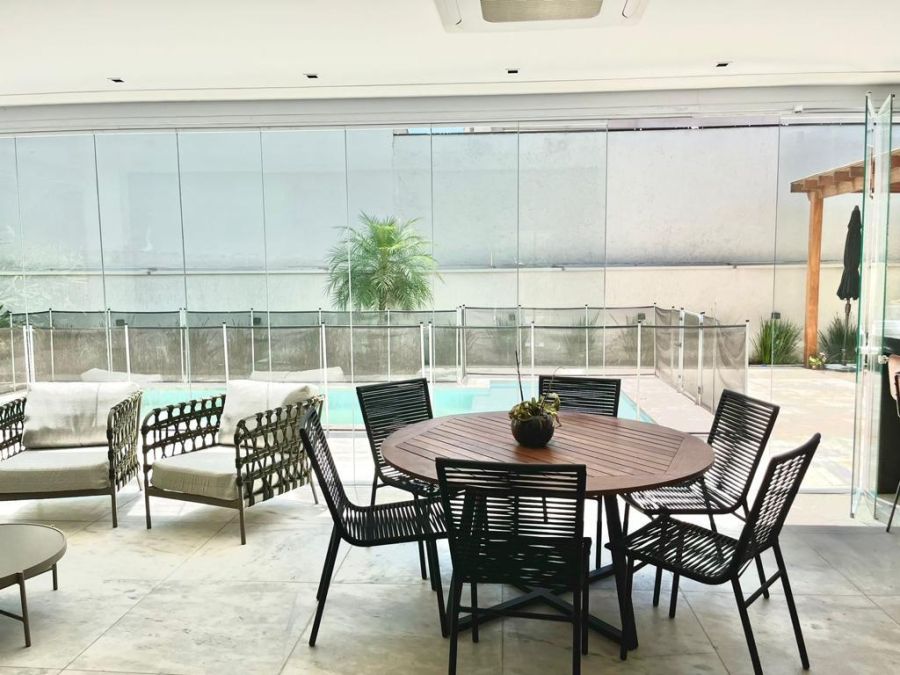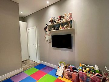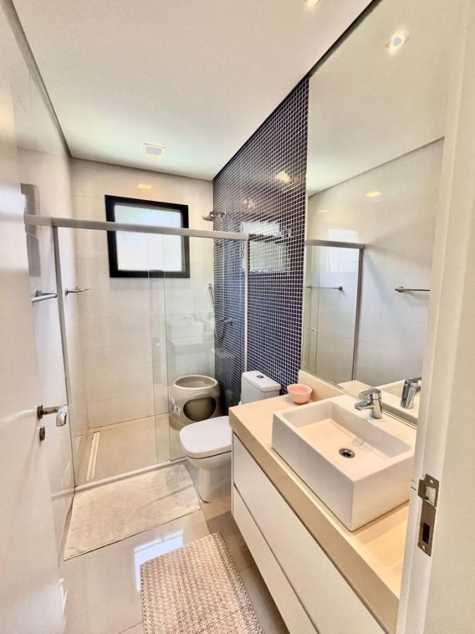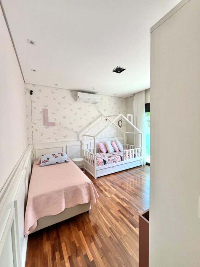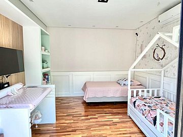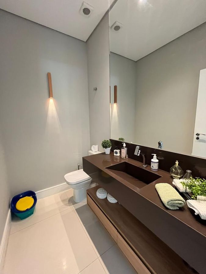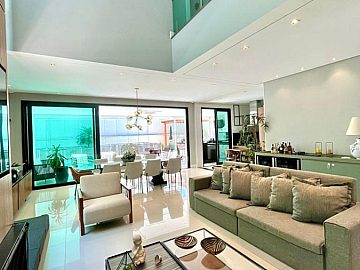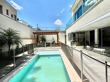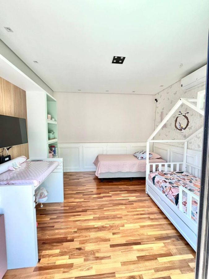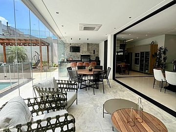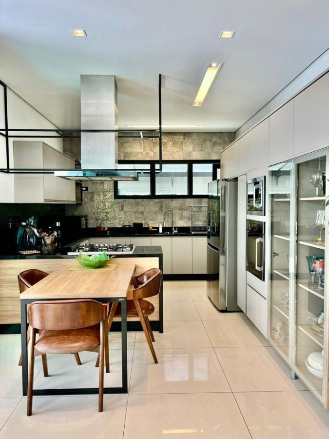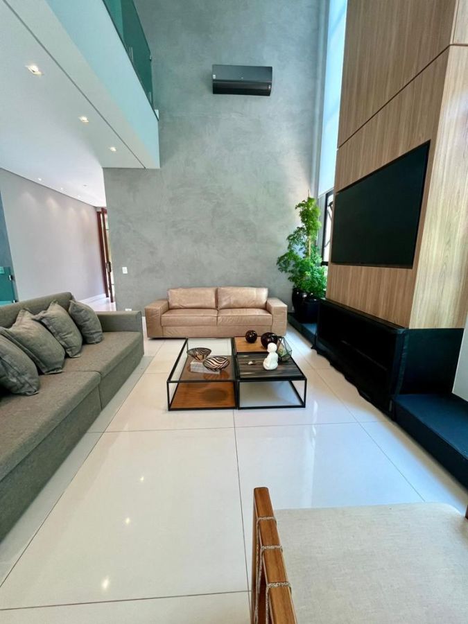 São 4 suítes sendo a master com amplo closet, sala para 3 ambientes com pé direito alto, escritório/sala de tv, cozinha aberta, despensa, espaçosa varanda gourmet, piscina, 4 vagas de garagem.