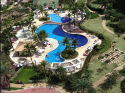 Complexo aquático imenso com várias piscinas integradas, adulto, infantil, bar, banheiros