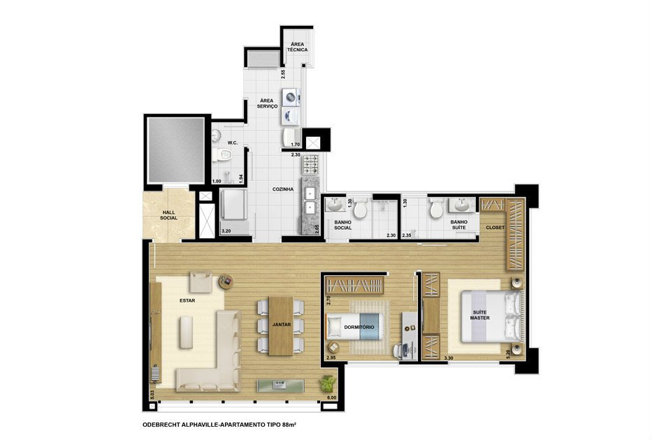 Área Total: 90m²Área Privativa: 90m²