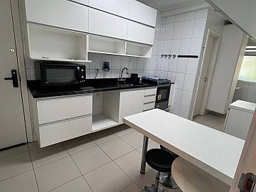 Ótimo apartamento com duas suites sendo a master com closet, lavabo, sala com sofá e mesa de jantar com 4 cadeiras, ampla cozinha com fogão, microondas e banquetas, área de servico, escritorio/despensa.