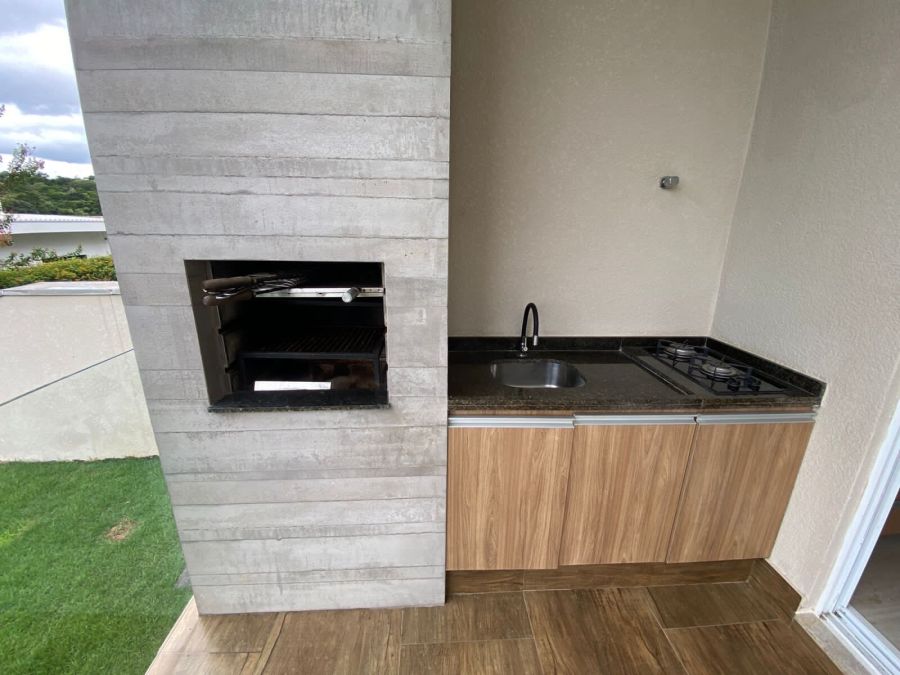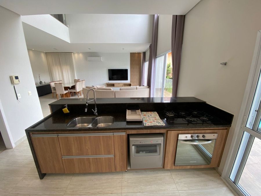 Linda casa contemporânea para locação com 5 quartos sendo 4 suítes, sala com pé direito alto integrada, escritório, sala de tv/música varanda gourmet com linda vista, ótima alameda do condomínio.
