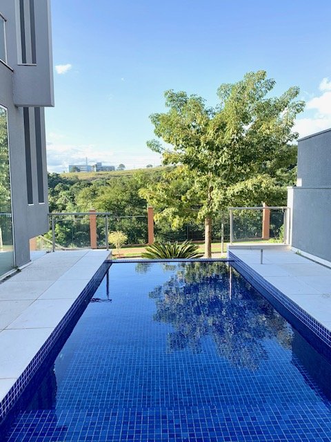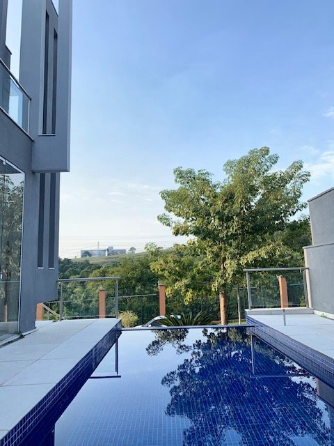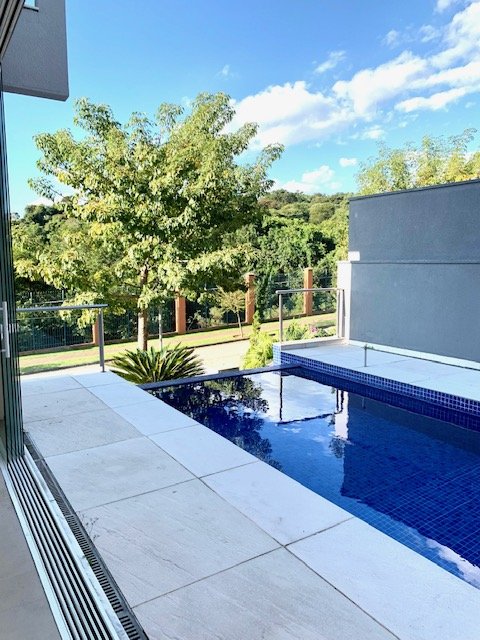 Ambientes integrados e voltados para a piscina com belíssima vista para a mata, projeto moderno e ótima iluminação natural, ar condicionado em todos os ambientes.