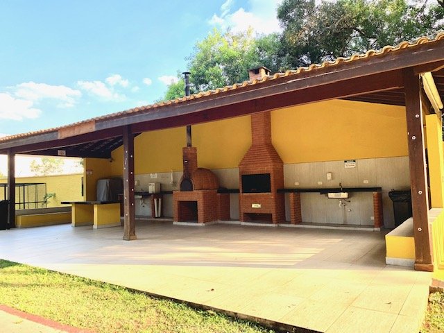 Condomínio bem arborizado com reservatório de água tratada, fiação subterrânea e infraestrutura completa de lazer com piscina, salão de festas, brinquedoteca, pista de skate, quadra poliesportiva, churrasqueira e academia.