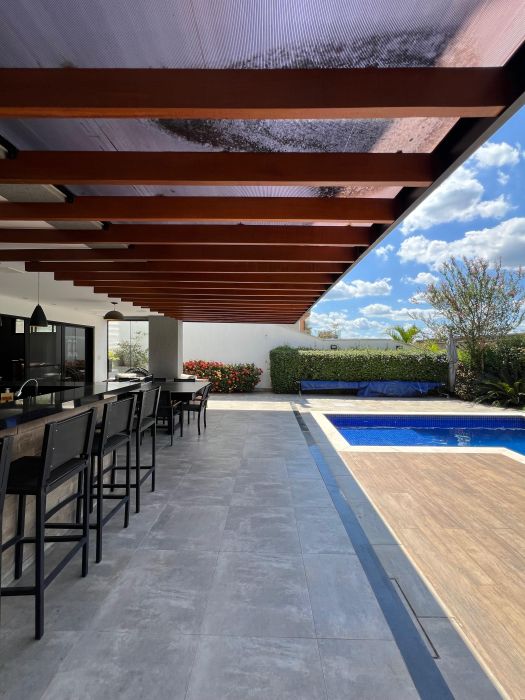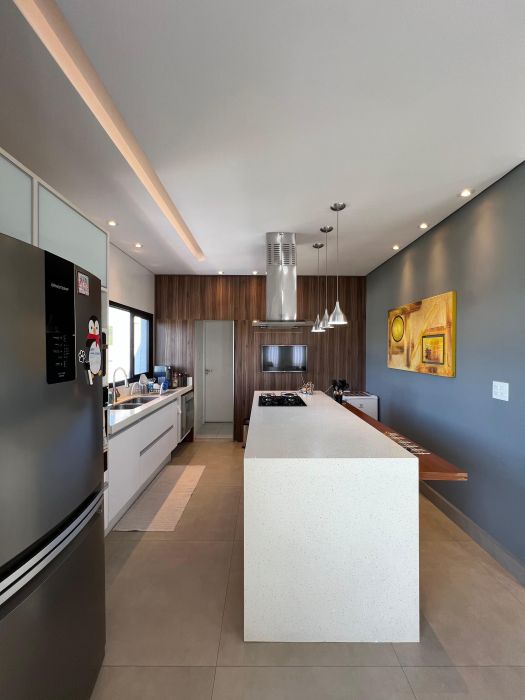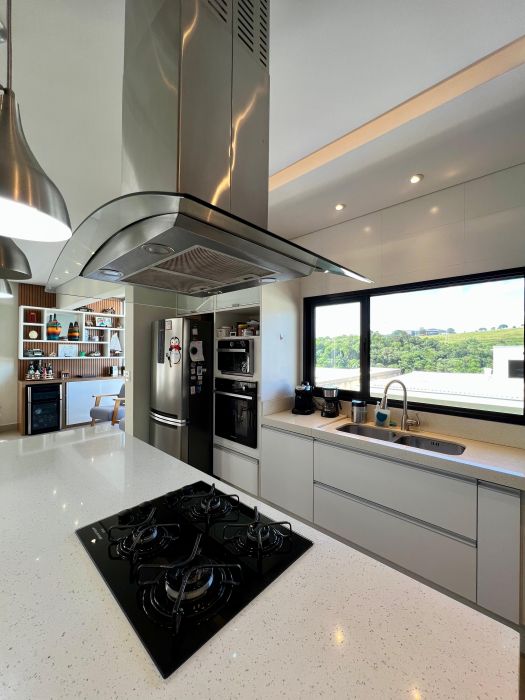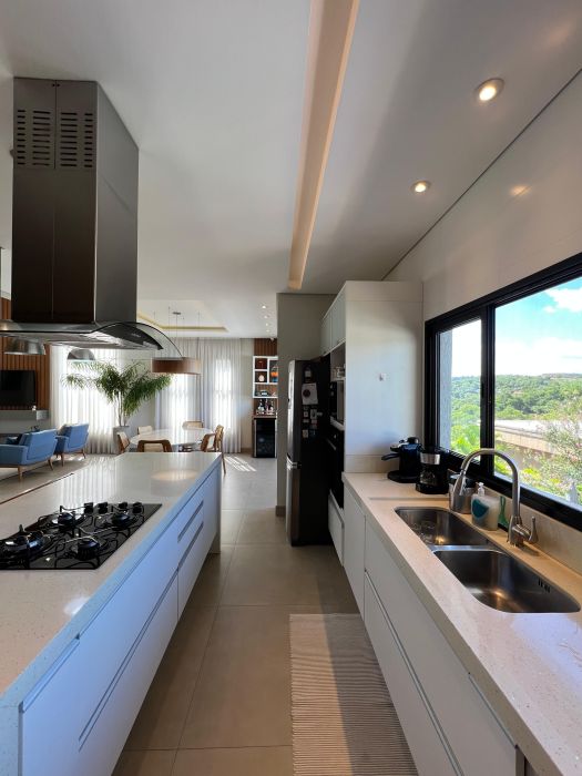 Casa moderna, toda integrada e com linda vista, situada numa das melhores alamedas do condomínio.