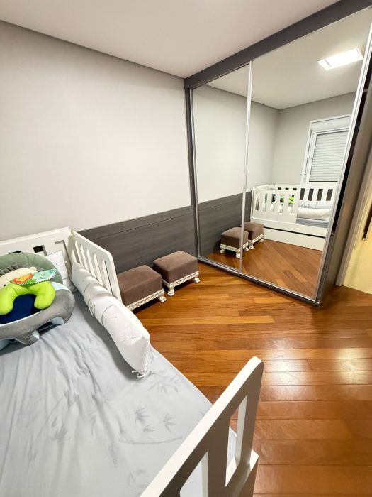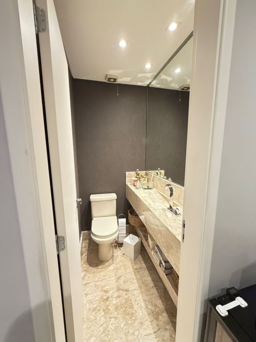 Dispõe de 3 suítes + home office, lavabo, banheiro de serviço e 3 vagas de garagem cobertas com depósito.