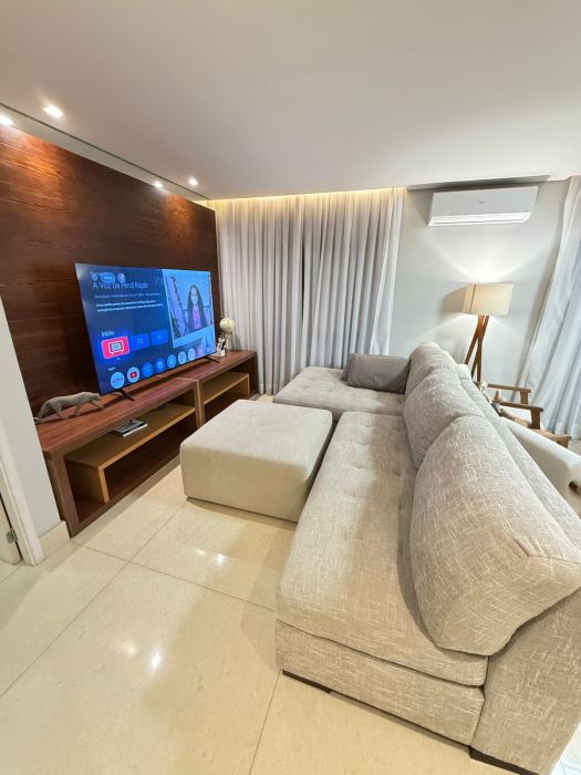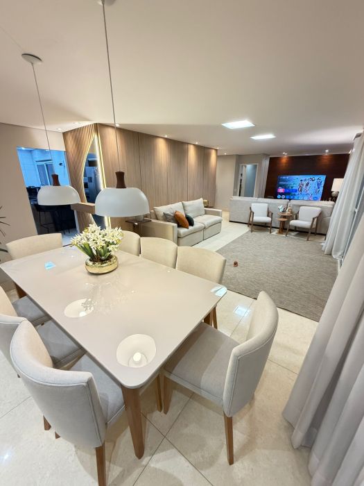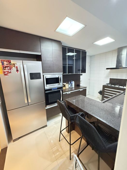 Conta com armários planejados de alto padrão, cozinha equipada com eletrodomésticos, além de uma varanda gourmet com churrasqueira a carvão, ideal para momentos de lazer.