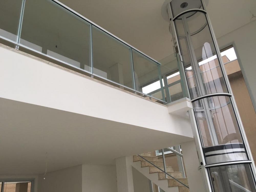 430 m2 de área construída, 4 suítes com piso em madeira, ampla sala bem iluminada, com pé direito duplo e elevador panorâmico, cozinha, espaço gourmet com piscina e churrasqueira, dependência de empregada, área de serviço, banheiros com cubas esculpidas em mármore, 6 vagas cobertas para carros de tamanho médio.